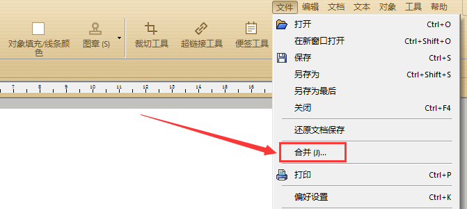 接着打开极速PDF编辑器,选择软件右上角“文件”中的“合并”功能。