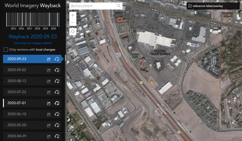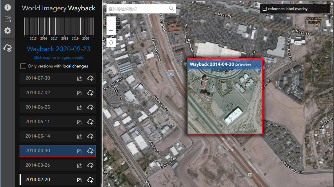 Esri应该是GIS领域各类数据资源最为丰富的厂家之一,依靠其积累的大量数据,同样提供了这一功能,有2014年到2020的历史影响。