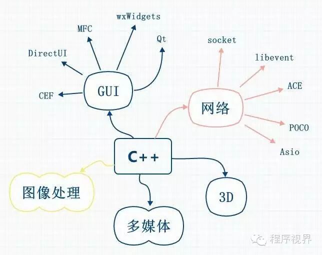 从图上就可以看出来,C++是知识的中心,围绕着它有很多相关联的知识。