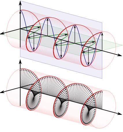 变成了一个螺旋线。是不是和电磁场很像?(想拿欧拉公式去跟女生炫学术的男生注意了:她们,真的,不CARE)