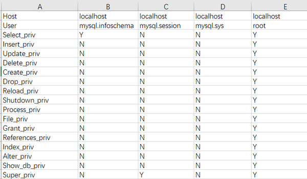 如上图,列出数据库所有的用户及权限