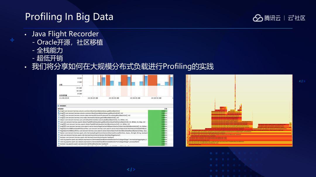 在大数据场景诊断和调优方面,Kona内部集成的Java Flight Recorder(Oracle开源)提供了生产环境可用的全栈JVM Profiling能力,并且提供了可以不用Heap Dump诊断memory leak的可能,这对于海量分布式集群、频繁大堆/超大堆的大数据场景,非常有帮助。