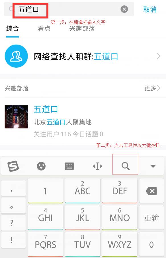 快速分享是这样一个功能,当在任意编辑框使用输入法打字上屏后,点击搜狗输入法工具栏的放大镜图标进行搜索,输入法键盘区域会显示对应的搜索结果卡片信息(如图)。