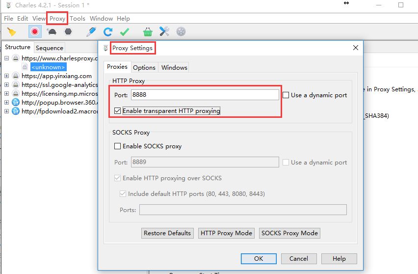 点击导航栏 Proxy ==> Proxy Setting ,按照下图设置,即可。