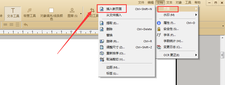 先打开极速PDF编辑器后,点击软件右上角文档中的页面,并插入一个或多个新页面。