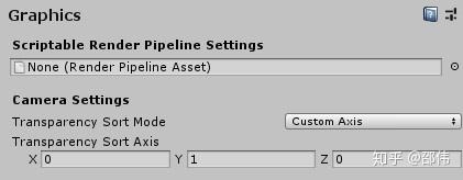 对于2D游戏,将Transparency Sort Mode (Edit > Project Settings > Graphics ) 设置为Custom Axis,然后设置Transparency Sort Axis,场景中的Sprite可以根据Y轴进行排序。如下图所示,当设置为(0,1,0)时,Y坐标相对较大的Sprite排在Y坐标相对较小的Sprite之下,当设置为(0,-1,0)时,则相反。