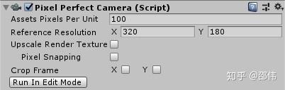 在摄像机上挂载Pixel Perfect Camera组件能够使2D像素风格的游戏画面更加整洁清晰。此组件需要使用Package Manager安装2D Pixel Perfect包。