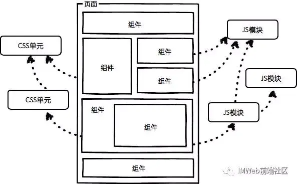 如上图,这是我所信仰的前端组件化开发理念,简单解读一下:
