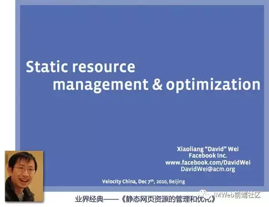 在我的印象中,Facebook是这方面探索的伟大先驱之一,早在2010年的Velocity China大会上,来自Facebook的David Wei博士就为业界展示了他们令人惊艳的静态网页资源管理和优化技术。