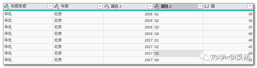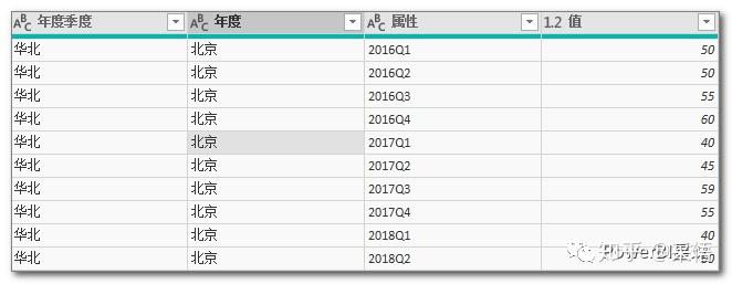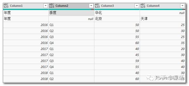 将上表导入到PowerQuery编辑器后,先把年度列向下填充,将年度数据补齐,然后再进行逆透视,
