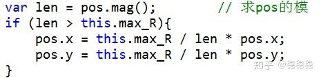 var len = pos.mag(); // 求向量pos的模(内部算法是(x2+y2)开根号)。