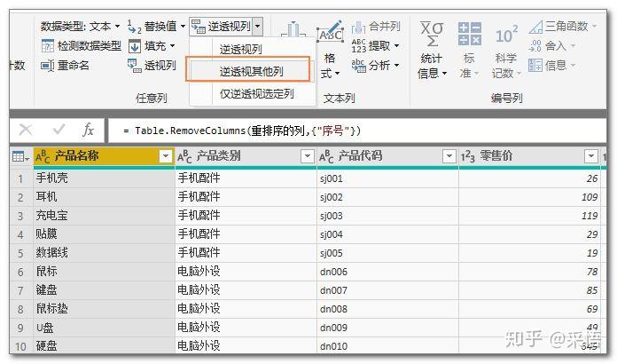选中基础列,也就是固定显示的列,比如[产品名称],然后逆透视其他列,