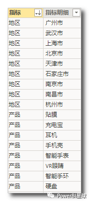 VAR table1=SELECTCOLUMNS(ADDCOLUMNS(VALUES(\'产品\'[产品名称]),"指标","产品"),"指标",[指标],"指标明细",[产品名称])