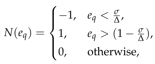 ,以确定哪些邻域更有可能受到噪声的影响。这个过程是由方程(2)中表示的分段函数为每个维度定义的: