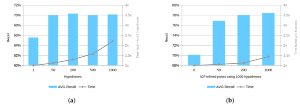 [1] Drost, B.; Ulrich, M.; Navab, N.; Ilic, S. Model globally, match locally: Efficient and robust 3D object recognition. In Proceedings of the 2010 IEEE Computer Society Conference on Computer Vision and Pattern Recognition, San Francisco, CA, USA, 13–18 June 2010; pp. 998–1005.[2] Vidal, J.; Lin, C.; Martí, R. 6D pose estimation using an improved method based on point pair features.In Proceedings of the 2018 4th International Conference on Control, Automation and Robotics (ICCAR),Auckland, New Zealand, 20–23 April 2018; pp. 405–409.