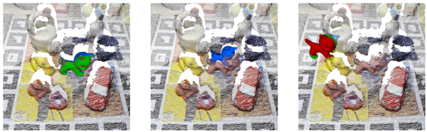 为了将相似的姿态组合在一起,我们提出了一种分层完全链接聚类方法。这种聚类方法强制要求每个聚类的所有元素组合基于两个主要阈值,即距离和旋转,在实验中,我们根据候选位姿的投票决定对位姿进行排序,并为每个位姿创建一个集群。然后,按顺序检查所有集群,当条件保持其元素的所有组合时,两个集群被连接在一起。这样,最有可能的集群将首先合并,减少相互排斥组合的影响。