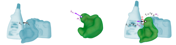 由于摄像机视图自遮挡在场景中的模型点产生的偏差和对象模型相对于场景的可能对齐误差,我们将上述位姿通过ICP算法进一步进行细化匹配,得到最优位姿。