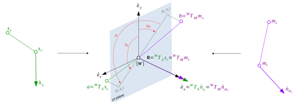 前处理包括法向估计和对点云的下采样。其中法向估计问题,本文建议使用两个不同的变体来表示每个阶段的输入数据表示。对于离线阶段,使用重构或cad网格数据,通过平均每个顶点周围三角形的法线平面来估计法线。对于在线阶段,利用有组织的点云数据,本文提出了一种基于一阶Taylor展开的方法,包括对表面深度差高于给定阈值的情况下的双边滤波器启发解决方案。而对点云下采样方面,本文是基于一种新的利用表面信息的体素网格下采样方法和一个额外的非识别对的平均步骤。首先计算点云数据的体素网格结构,对于每个体素单元,采用贪婪聚类方法对具有相似正态信息的点进行分组,即法线之间的角度小于阈值。然后,对于每个聚类组,我们平均定向点,有效地合并相似点,同时保持判别数据。与原始方法一样,体素大小设置为,定义相对于模型大小的值,然而,在本文方法中,参数对算法性能的影响显著降低,转向了一种更鲁棒的参数无关方法。