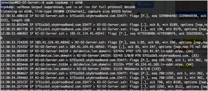 Tcpdump 将按照你在命令行中指定的表达式输出匹配捕获到的数据包的信息。你还可以将此数据保存并进一步分析。