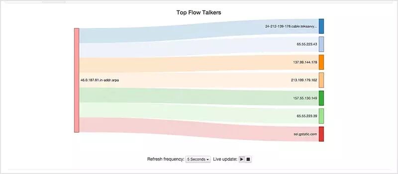 jnettop 以相同的方式来监测网络流量但比 iftop 更形象。它还支持自定义的文本输出,并能以友好的交互方式来深度分析日志。