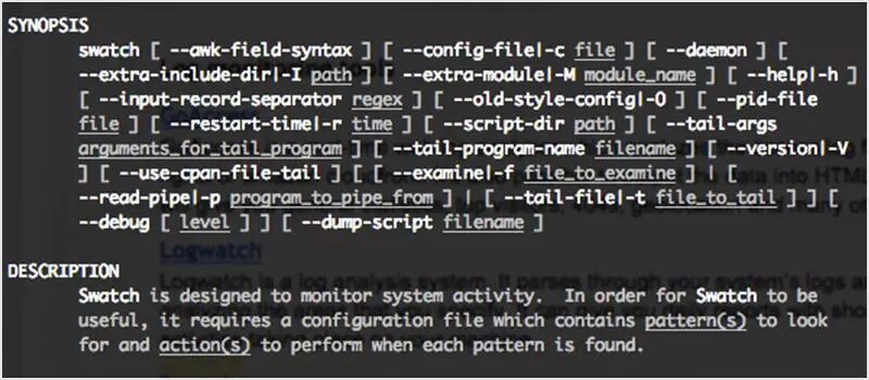 像 Logwatch 一样,Swatch 也监控你的日志,但不是给你一个报告,它会匹配你定义的正则表达式,当匹配到后会通过邮件或控制台通知你。它可用于检测入侵者。