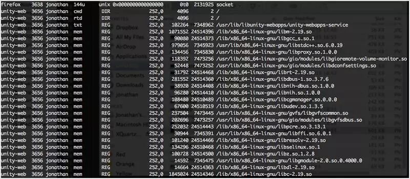 lsof 是一个内置的工具,可让你列出所有打开的文件和网络连接。从那里你可以看到文件是由哪个进程打开的,基于进程名可找到其特定的用户,或杀死属于某个用户的所有进程。