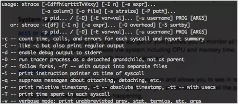 strace 被用于诊断、调试和监控程序之间的相互调用过程。最常见的做法是用 strace 打印系统调用的程序列表,其可以看出程序是否像预期那样被执行了。