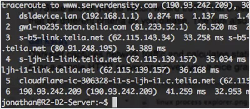 traceroute 是一个内置工具,能显示路由和测量数据包在网络中的延迟。