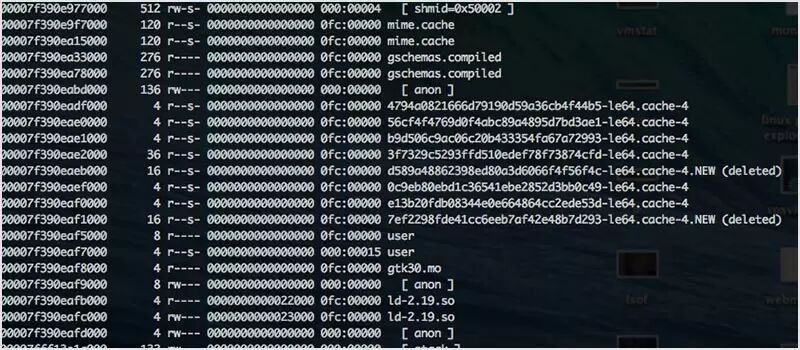 pmap 是一个内置的工具,报告一个进程的内存映射。你可以使用这个命令来找出导致内存瓶颈的原因。