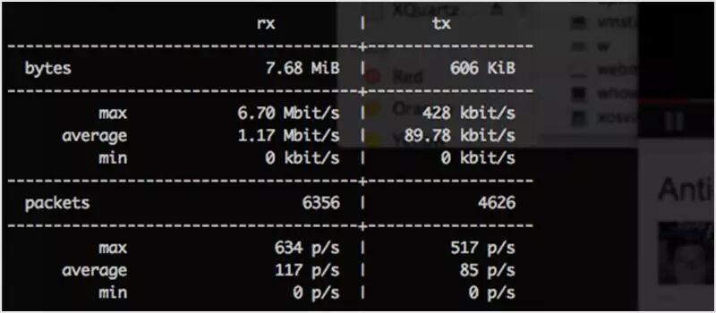这是一个命令行工具来监控网络的吞吐量。它很整洁,因为它使用两个图表和其他一些类似传输的数据总量这样的有用数据来对进出站流量进行可视化。你可以使用如下方法安装它: