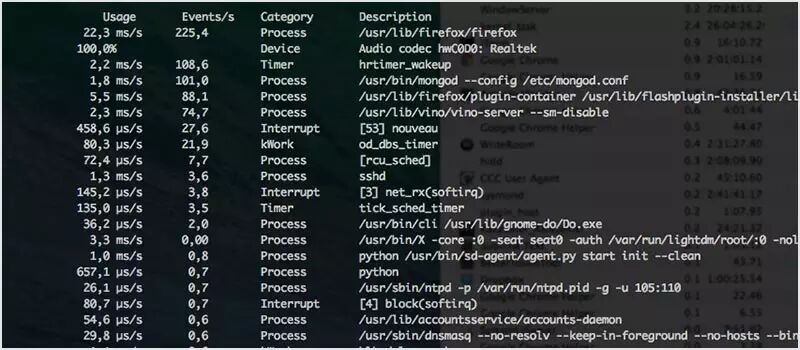 acct 也称 psacct(取决于如果你使用 apt-get 还是 yum)可以监控所有用户执行的命令,包括 CPU 时间和内存占用。一旦安装完成后你可以使用命令 sa 来查看统计。