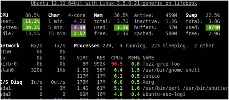 nmon 将数据输出到屏幕上的,或将其保存在一个以逗号分隔的文件中。你可以查看 CPU,内存,网络,文件系统,前列 进程。数据也可以被添加到 RRD 数据库中用于进一步分析。