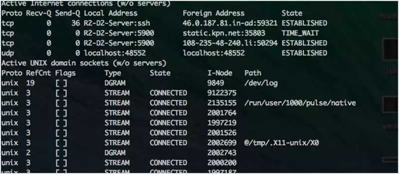 比起 netstat,使用 ss 更好。ss 命令能够显示的信息比 netstat 更多,也更快。如果你想查看统计结果的总信息,你可以使用命令 ss -s。