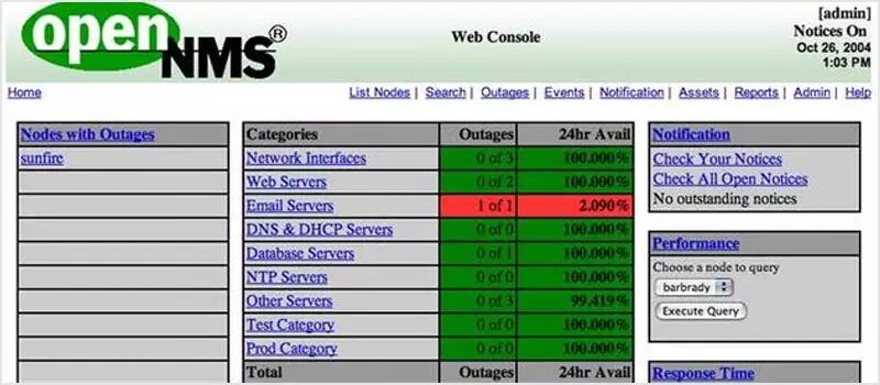 OpenNMS 主要有四个功能区:事件管理和通知;发现和配置;服务监控和数据收集。其设计为可被在多种网络环境中定制。