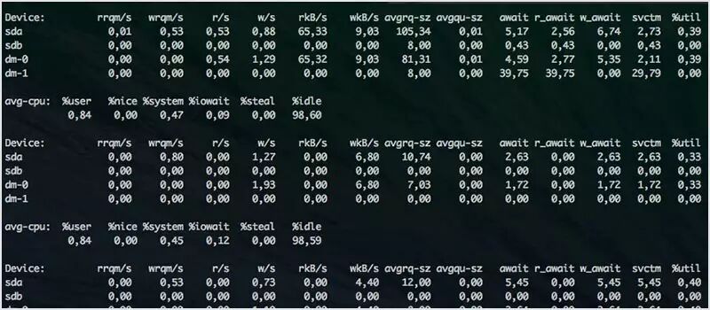 iostat 也是 sysstat 包的一部分。此命令用于监控系统的输入/输出。其报告可以用来进行系统调优,以更好地调节你机器上硬盘的输入/输出负载。