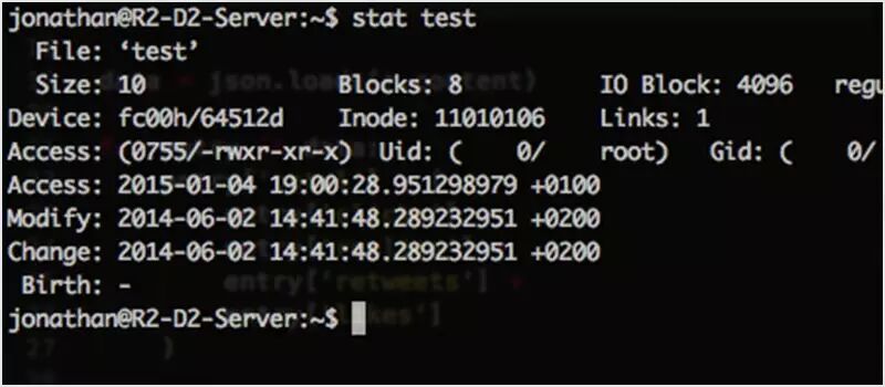Stat 是一个内置的工具,用于显示文件和文件系统的状态信息。它会显示文件何时被修改、访问或更改。