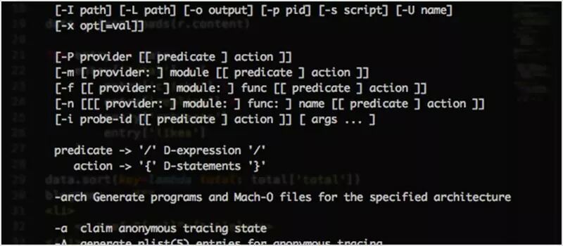 DTrace 可以说是 strace 的大哥。它动态地跟踪与检测代码实时运行的指令。它允许你深入分析其性能和诊断故障。但是,它并不简单,关于这个话题有1200本书之多。