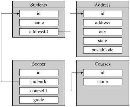 上面语句,join将Students和Address两表关联,关联需要一个或多个字段作为联接桥梁。例子中的桥梁就是addressid,我们使用on语句,将Students表的addressId字段和Address的id字段匹配。