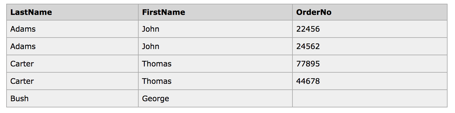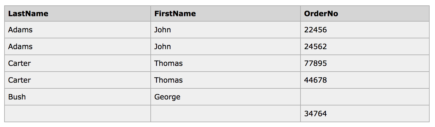 select Persons.LastName, Persons.FirstName, Orders.OrderNo