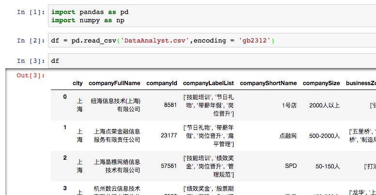 read_csv拥有诸多的参数,encoding是最常用的参数之一,它用来读取csv格式的编码。这里使用了gb2312,该编码常见于windows,如果报错,可以尝试utf-8。