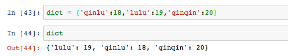 细心的读者可能已经发现,字典定义时我的输入顺序是qinlu,lulu,qinqin,而打印出来是lulu,qinlu,qinqin,顺序变了。这是因为定义时key的顺序和放在内存的key顺序没有关系,key-value通过hash算法互相确定,甚至不同Python版本的哈希算法也不同。这一点应用中要避免出错。