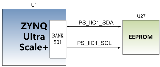 AXU2CGA/B开发板板载了一片EEPROM,型号为24LC04。EEPROM的I2C信号连接的ZYNQ PS端的MIO口上。图6-1为EEPROM的原理图
