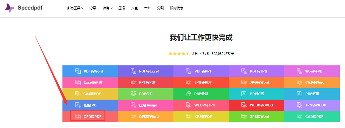 首先打开浏览器搜索speedpdf即可找到并进入这款在线转换工具,接着选择OFD转PDF;