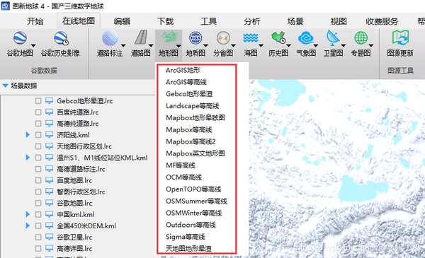 图新地球自带谷歌等高线(地形渲染图),查看起来毫无障碍。