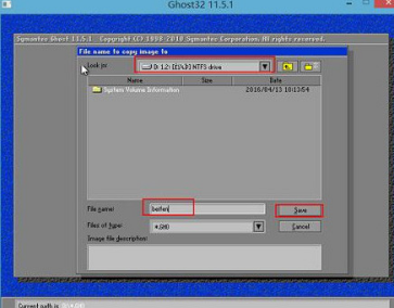 7、在上方选择存放备份文件的储存空间,然后在File name上填写备份文件的文件名,最后点击“Save”,如图所示: