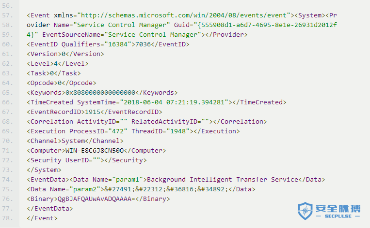 查看事件日志,选中一条日志,选择详细信息->XML视图