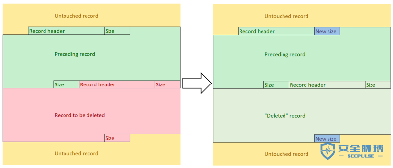 如果修改某条日志的长度,使长度覆盖下一条日志,那么Windows系统在解析时,就会跳过下一条日志,相当于下一条日志被隐藏