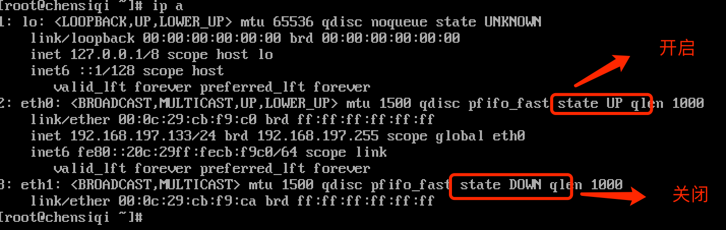 ip a:可以查看所有网卡的IP地址(还能看到关闭状态的网卡)