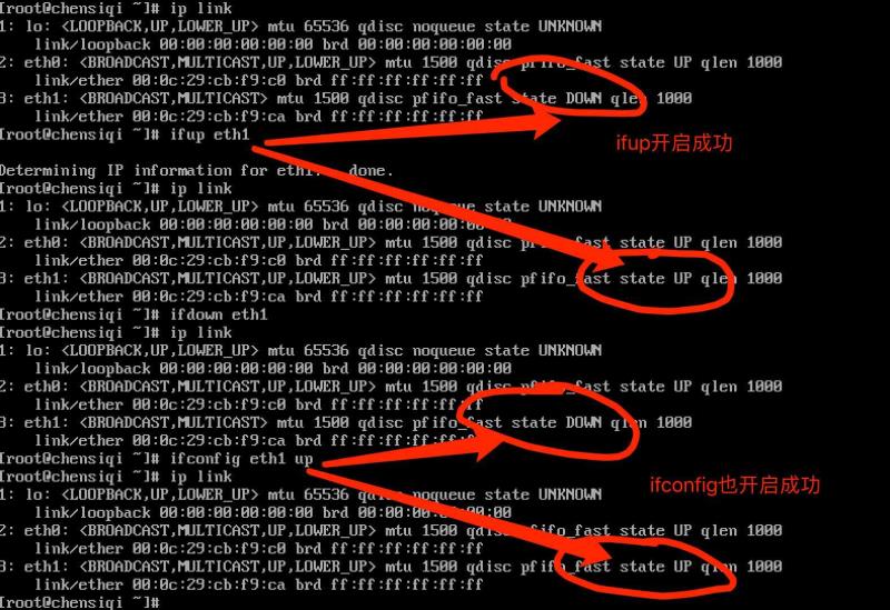 •这是因为,ifup/ifdown这个命令控制的实际上并不是物理网卡的开启和关闭,而实际上他控制的仅仅是网卡的配置文件而已,它是通过网卡配置文件间接的操作网卡设备。
