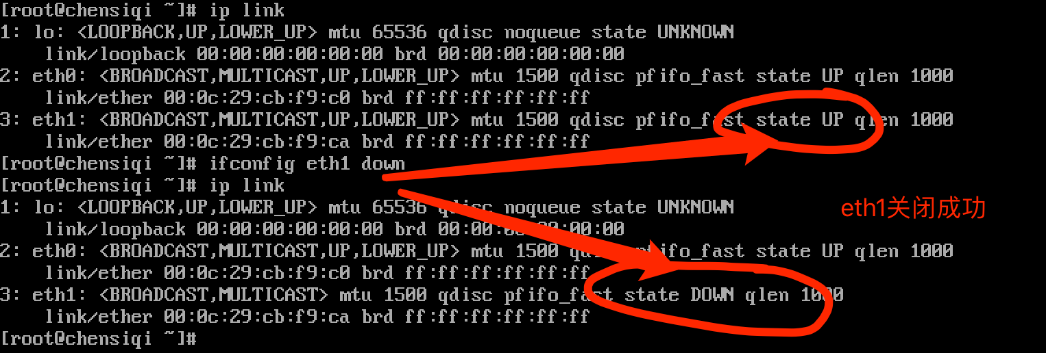 第二步,我们关闭eth1这个网卡设备